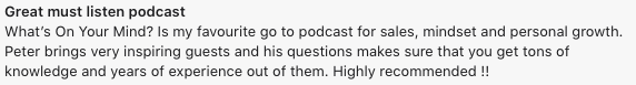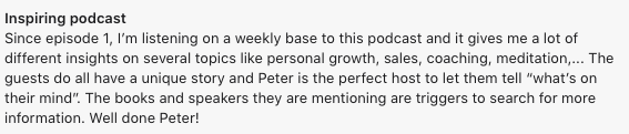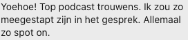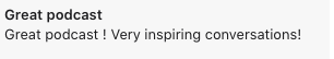 This could be yours ! Please let me know what your opinion is of a certain conversation or even the complete podcast !